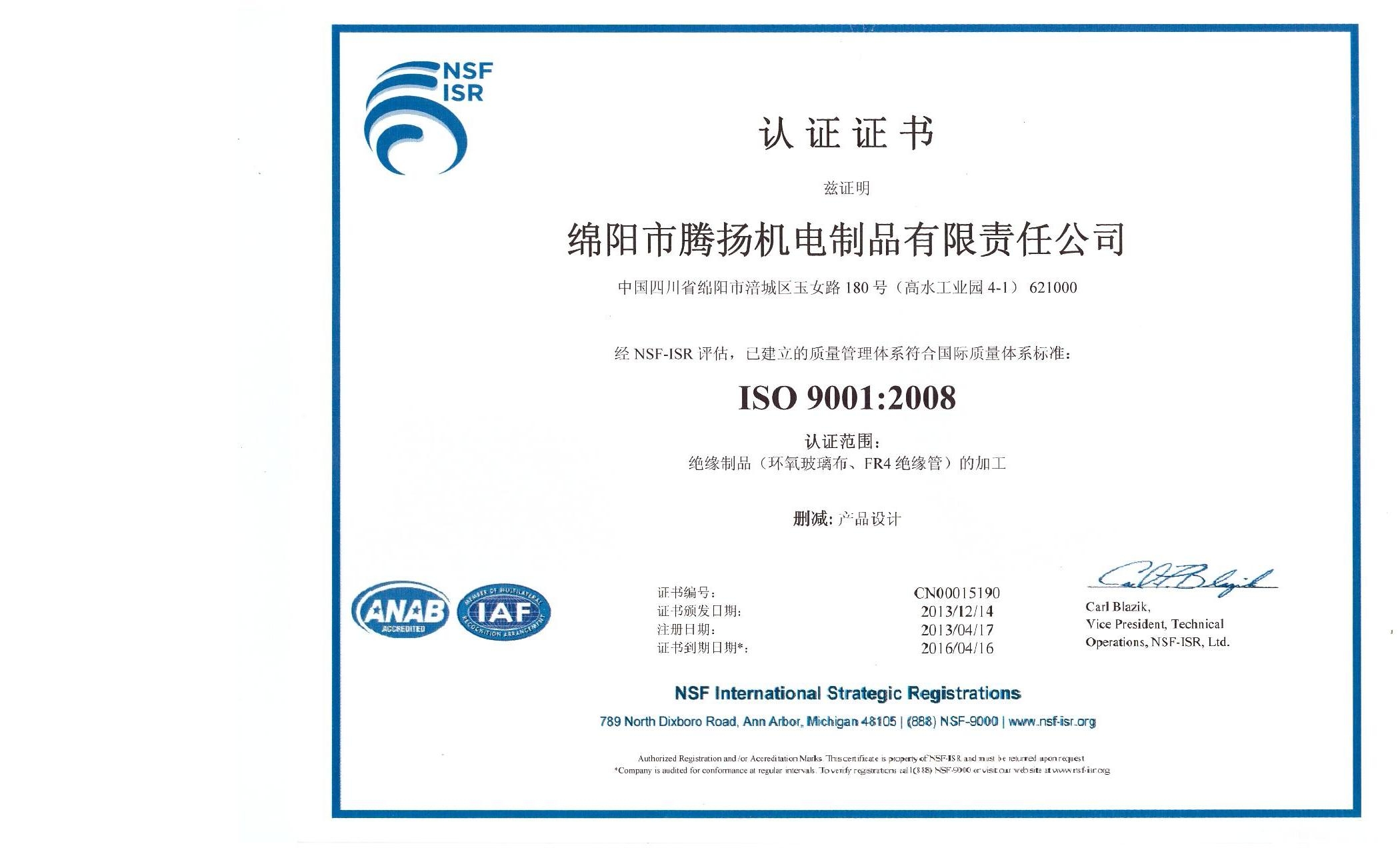 ISO認(rèn)證證書